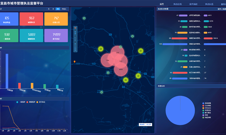 即刻了解為服務宜昌市高質量發展,建立健全文明城市創建長效機制,鞏固文明城市創建成果,根據國家、湖北省城市管理相關會議精神和工作要求,構建宜昌市城市管理執法監督平臺,覆蓋市級城管執法部門,6個區8個縣的區屬執法部門、鄉鎮(街道)綜合執法中心,共計執法部門105個,執法人員900余人。
