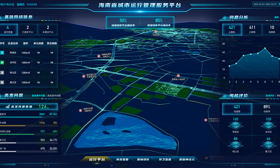 海南省在原有城市管理信息化工作基礎上,整合建設覆蓋20個市縣的海南省市一體化城市綜合管理服務平臺,初步形成全省城市綜合管理服務平臺智慧互聯、數據共享、協同高效,打造集精準監測、主動發現、智能處置的城市“一盤棋”治理體系,增強城市管理綜合統籌能力,提高城市科學化、精細化、智能化管理水平。
